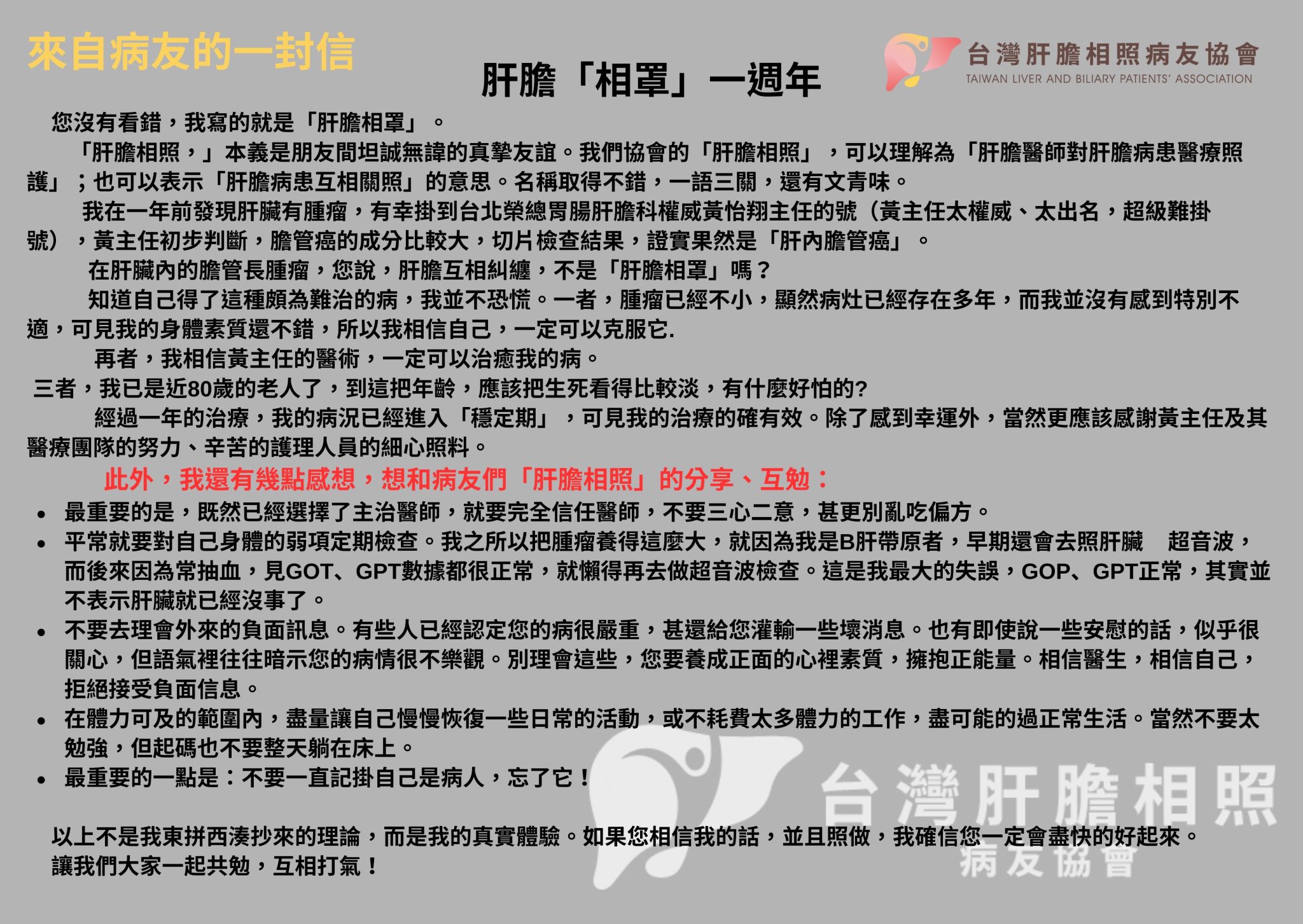 肝癌治療的路上不孤單 病友會集眾人之需一同發聲